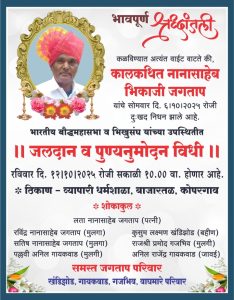 अहिल्या नगर , नासिक , औरंगाबाद जिल्ह्यातील नैसर्गिक, आर्थिक, सामाजिकदृष्ट्या मागासलेल्या वंचितांसाठी धम्म व आंबेडकर चळवळीतीला खंबीर पणे आधार देतांना अंधश्रद्धाळू फॅसिस्ट व राजकीय, जातीय आणि धर्मांधांच्या कोणत्याही आमिषाला बळी न पडता कोणत्याही व्यासपीठावर केवळ नि केवळ बोलबच्चन न करता प्रत्यक्षात आयुष्यभर अहोरात्र स्वतःला झोकून देत वंचितांचा आधारवड बनलेल्या कालकथित नानासाहेब जगताप यांच्या कार्याची पोकळी अवघ्या आठ दिवसांत प्रखरपणे जाणवत असल्याने त्यांचे अमुल्य,अतुल्य चिरंजीवी विचार आणि कार्य केवळ सर्व धर्मिय वंचितांचा कायमस्वरूपी आधारवड व दिपस्तंभ ठरत असल्याचे सिद्ध झाले आहे..